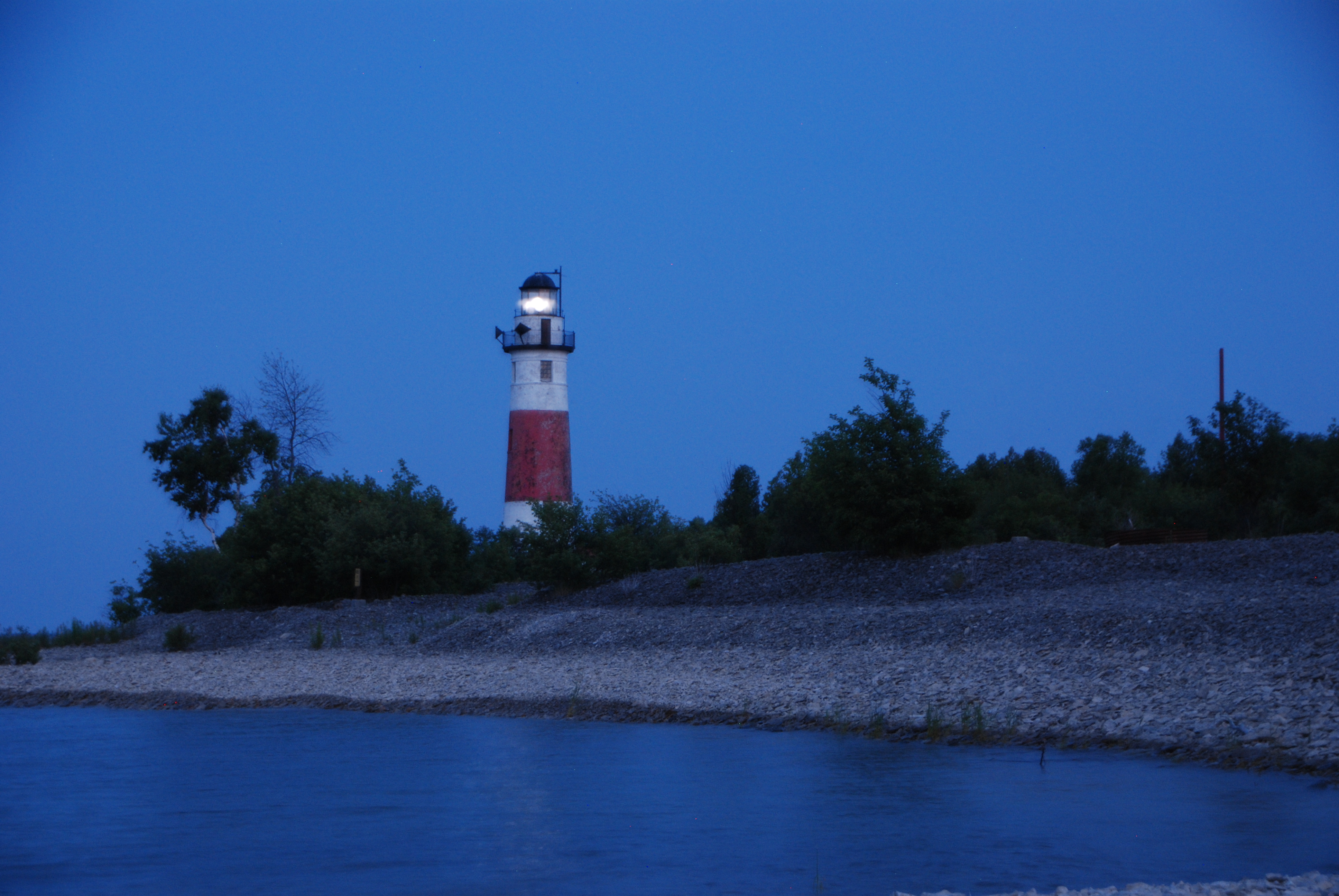 There is something about being away from everything and unconnected from the world — no TV, no radio, no telephone (cell phones only worked down by the water, not in the lodge), no electricity, no indoor plumbing except for non-consumable water at the kitchen sink, no air conditioning, no street lights, no cars, no other humans on a 263 acre island.  There is an operating lighthouse and you may see ships and other boats passing in the distance  on Lake Huron.   It is a peaceful existence.