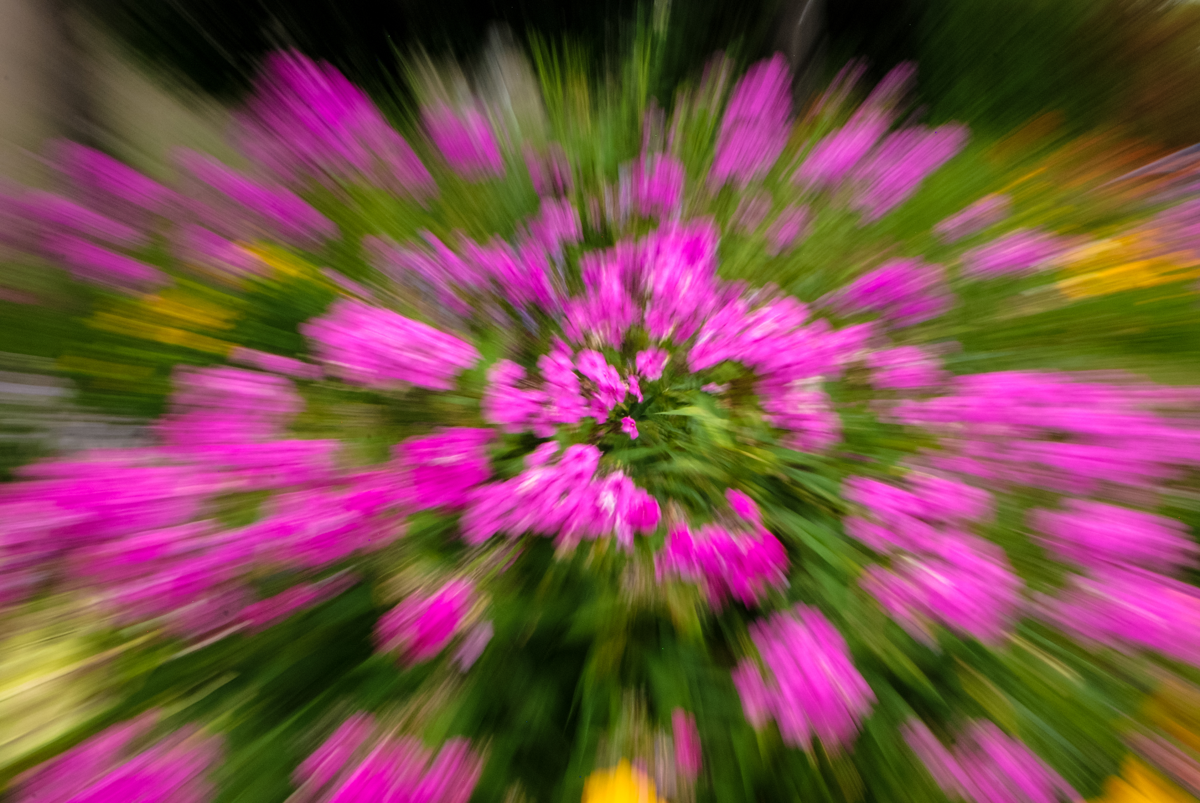 When you spin the lens slower you are more apt to capture a bit of your main subject in focus so that viewers can determine what it was you were shooting. A faster zoom gives a more abstract appearance. I have also tried some moving subjects, which puts a unique “spin” on it, because you have the combination of the spin of the lens doubled with the speed of tracking your subject.