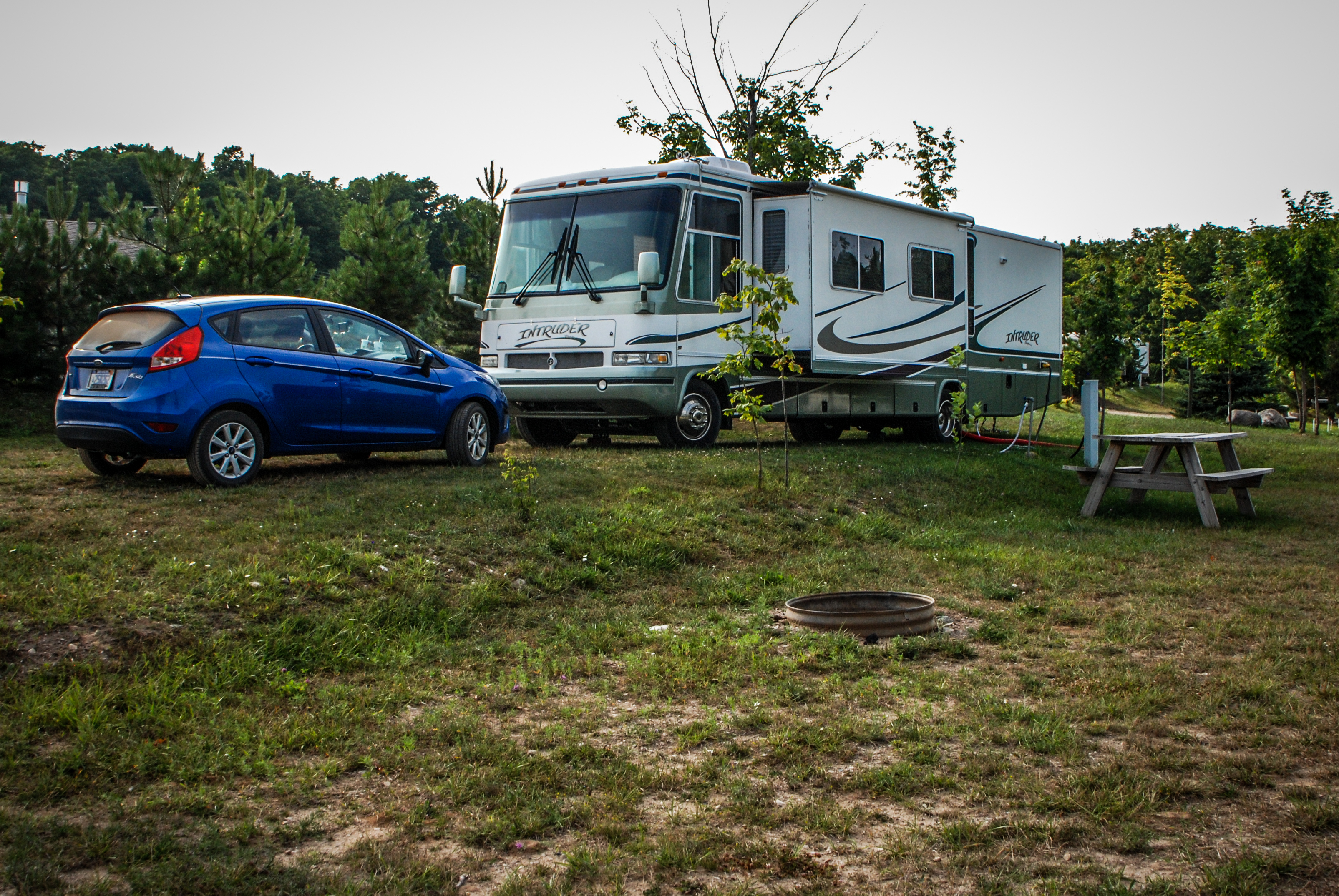 Motor home and car.  Photo by Grace Grogan