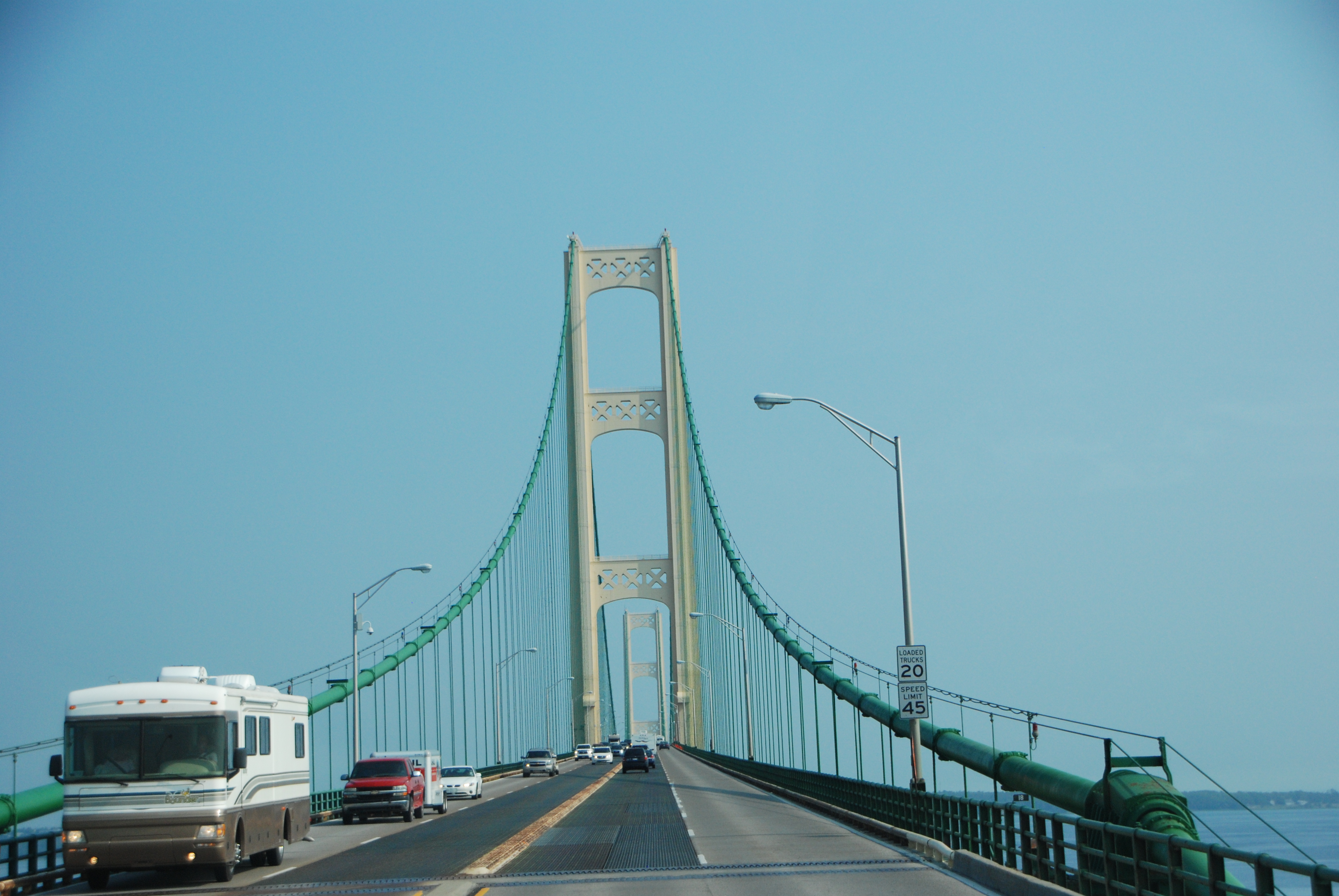 Mackinac Bridge during Orange Barrel Season.  Photo by Grace Grogan.