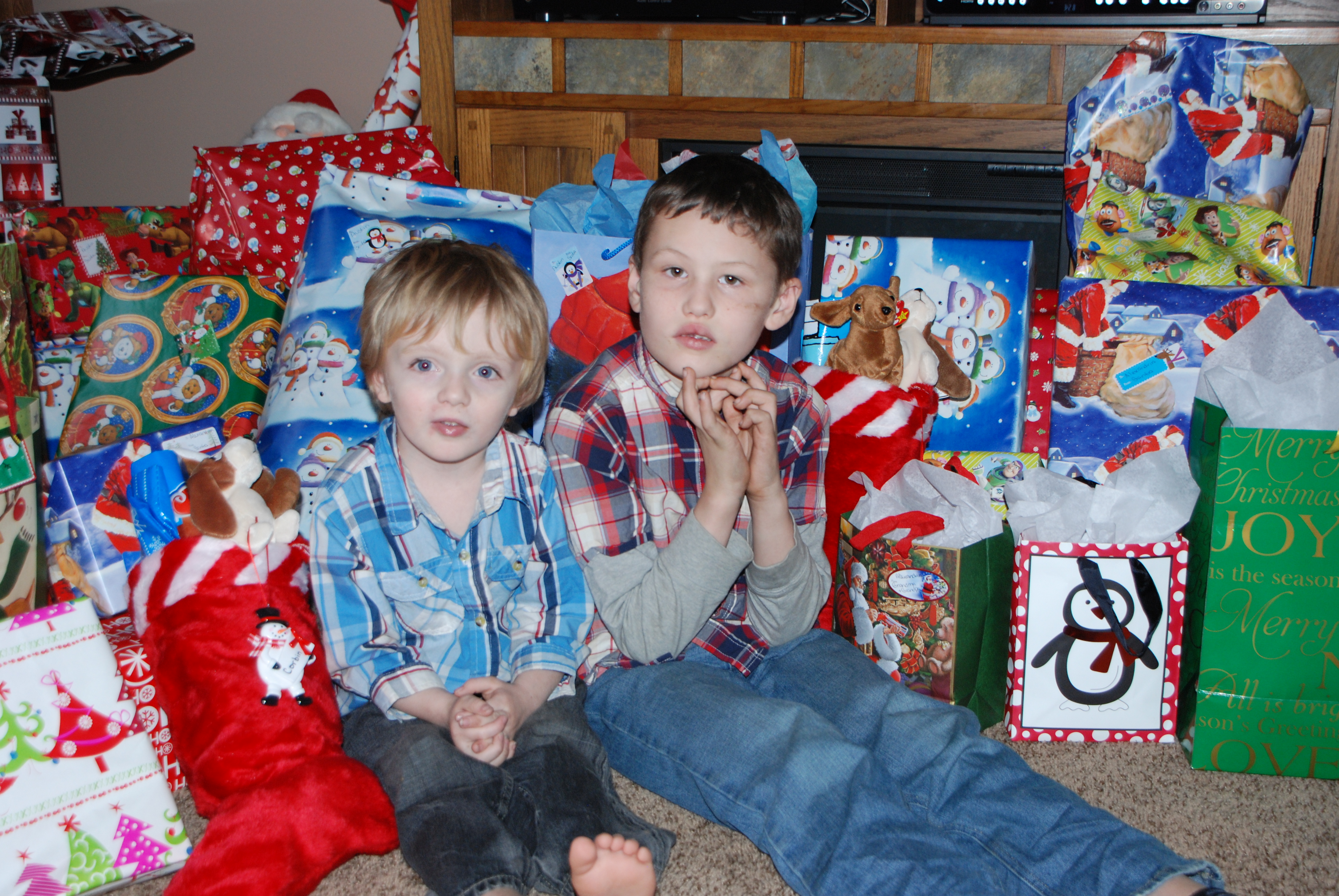 Our oldest grandson, Austin, was leaving at 9 pm Christmas Eve to spend the rest of his Christmas vacation at his father’s house. This created a bit of a dilemma as my daughter’s boyfriend, Rob, had to work the morning of Christmas Eve, so it raised a problem with when Santa should arrive. The solution – Santa came to our house, left a note explaining why all the gifts were here and not at their house.