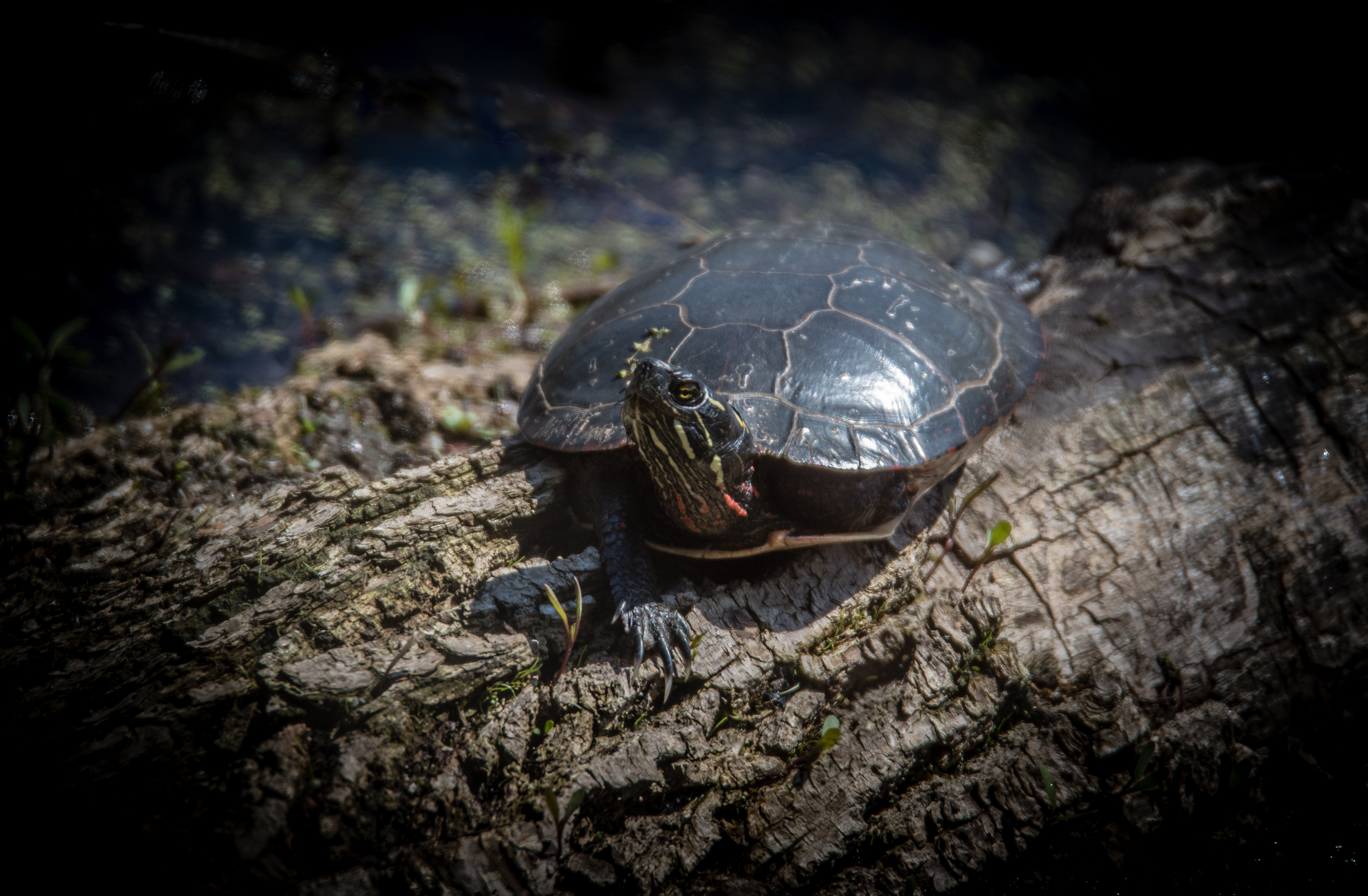 Magee Marsh is located in Ohio and is a great place for photographers and bird watchers. It is where Warblers gather each spring before flying over Lake Erie on their migration north in the spring. Unfortunately we were a bit early and there weren’t many birds at the location yet. It was a nice, warm day on the boardwalk, and if you look around you can usually find things to photograph, such as moss growing on a log, or a turtle sunning himself in the sun.