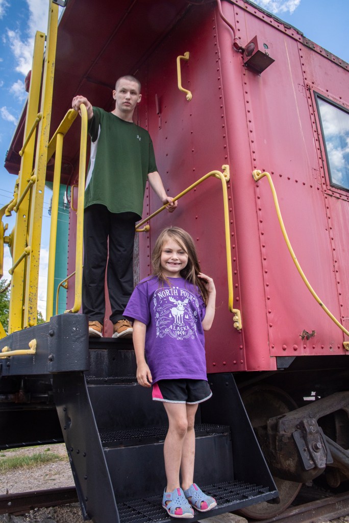 I took the three of them to a small, local railroad museum. The museum was interesting but didn’t hold their attention for long, so I suggested ice cream. I was surprised to learn Corbin doesn’t like ice cream, so he got a pop to drink instead. I thought it was cool when an Amish horse and buggy came down the street as we ate our ice cream at a picnic table.