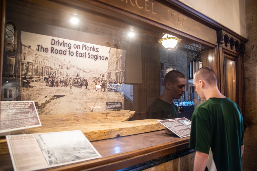 The museum has three levels of exhibits and displays, covering the Saginaw Sports Hall of Fame, lumbering, and automotive. There are some hands-on exhibits and many displays with informational cards to read. I’m sure there are things we missed or skimmed over when we were there. Their gift items are minimal, and Austin wasn’t interested in any of the items they had.