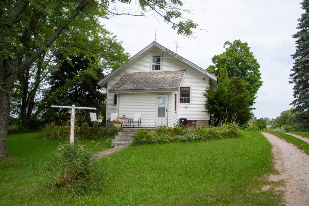 The above is the farm of my paternal grandparents, Louise and Dominick King, built by my great-grandfather in 1918 on M-72 in Traverse City. You see the front and back of the house, the view of the barns from the back porch, and Caroline standing under weeping willow trees between the sideyard and one of the farming fields.