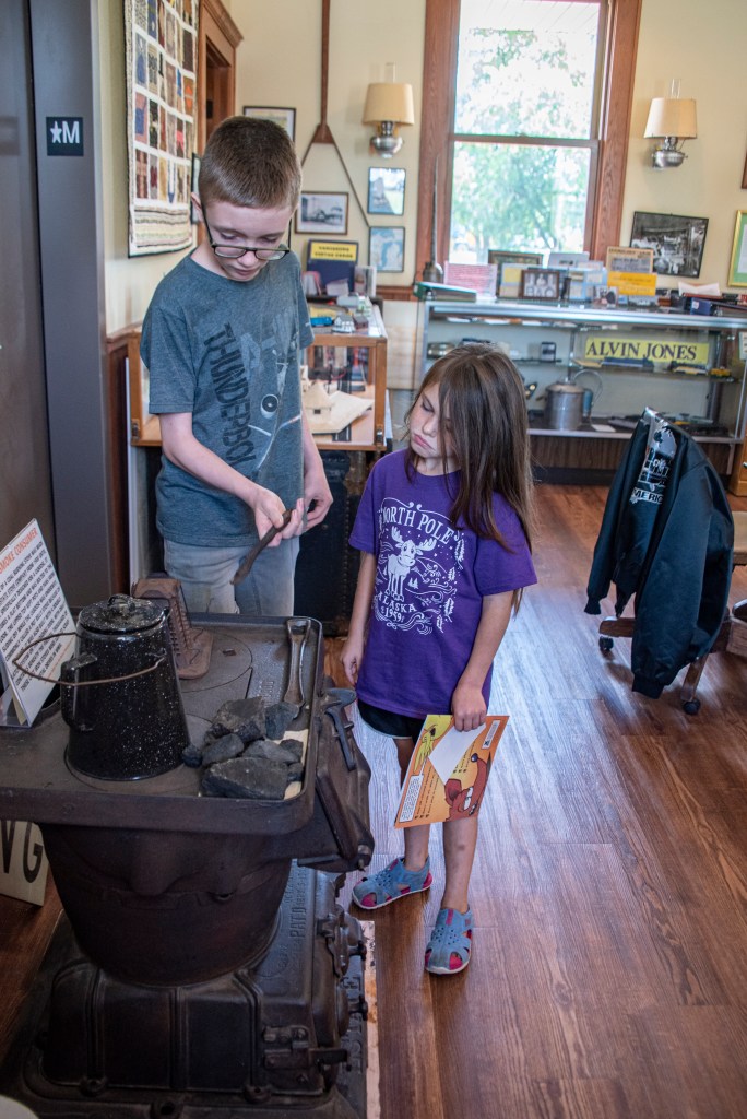 Austin got a couple of outfits for school, then selected McDonald’s for lunch. He is quieter, so conversation is at a minimum with him. After lunch, we went to the Castle Museum of Saginaw County History.