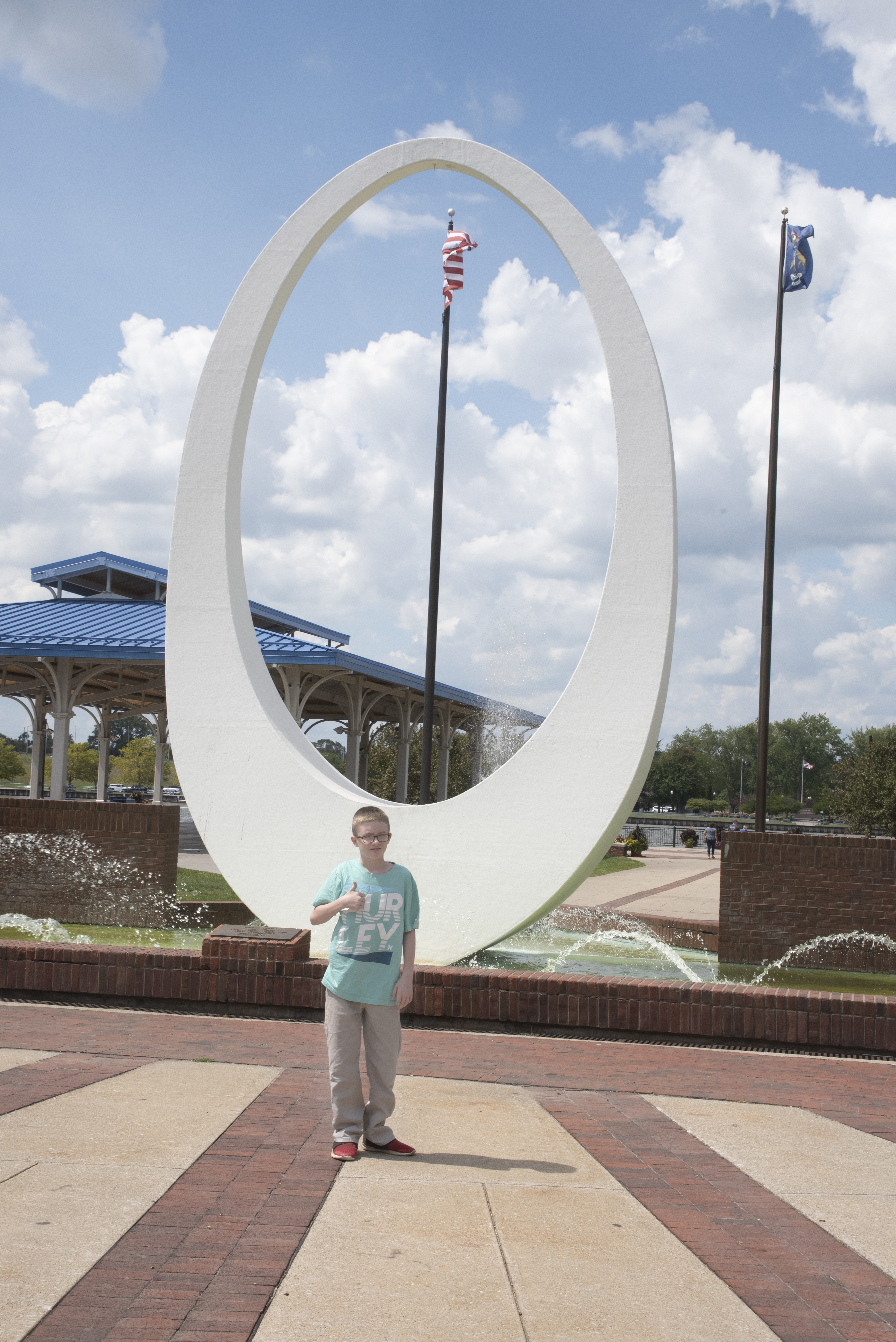 After the program, we walked across the street to Wenonah Park, which displayed several flags. I was impressed that Corbin could list their origins; I didn’t know them. After spending a few minutes at the park, Corbin suggested we head to lunch—I guess he was hungry.