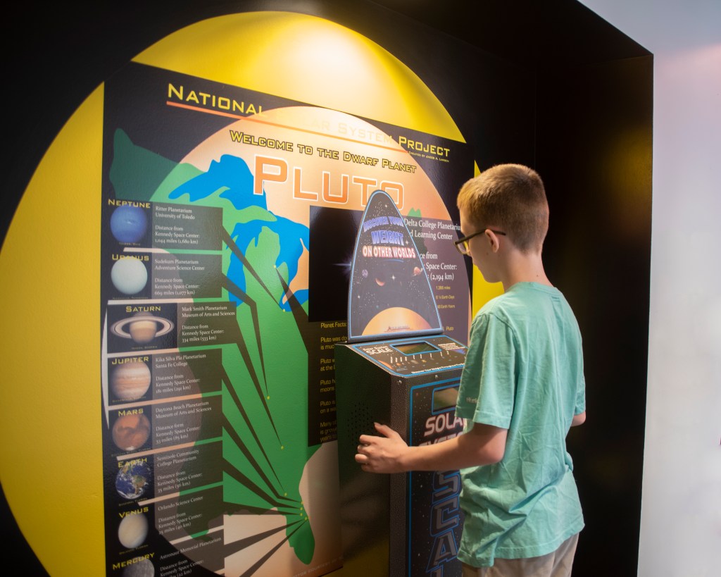 Corbin, at age 12, loves astronomy, so I purchased tickets for a program at the Delta College Planetarium. We arrived a little early and explored the exhibits they had while waiting for the program to start. The program was interesting and designed for kids exploring space, but informative and interesting. The gift area had pencils and pencil toppers in an assortment of designs, so Corbin picked three sets for himself, then selected some for Austin and Alex.