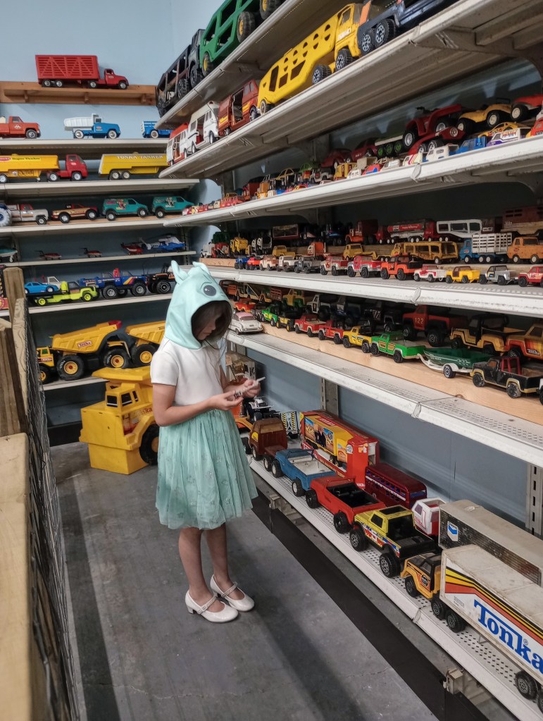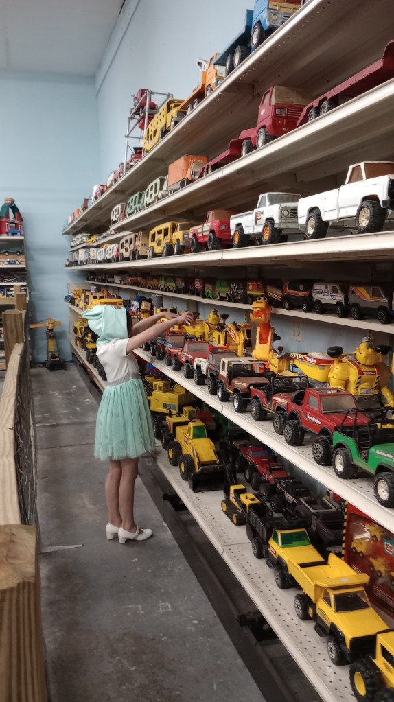 I was surprised when Alexandria selected the Antique Toy and Firehouse Museum for one of her outings. I had put that on Corbin’s list of possibilities because he has always liked vehicles, but he passed on the option. The museum has more than 60 motorized firetrucks, the largest collection in the world, and includes the FDNY Super Pumper, considered the T-Rex of fire engines. They also have over 12,000 antique and collectible toys.