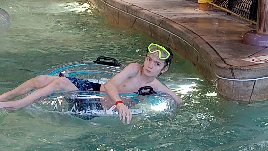 Corbin’s other selected outing was to a water park. Since he had been to the one in Mt. Pleasant a few times, I took him to Zehnders Splash Village in Frankenmuth.  Water slides aren’t my thing, but I enjoyed watching Corbin play in the pools, relax in the hot tub, float the lazy river, shoot down a water slide, and other activities. Our tickets were for five hours in the park. Afterward, we enjoyed lunch in the hotel restaurant before leaving.